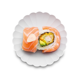 Tempura shrimp, avocado & spicy sauce, topped with salmon & garlic