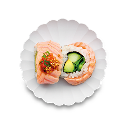 Snow peas, avocado, miso aïoli & cucumber, topped with seared salmon & trout roe.
